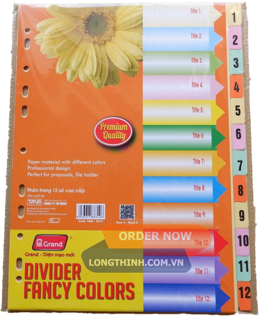 Đánh giá Bìa phân trang giấy 12 số màu PGRAND