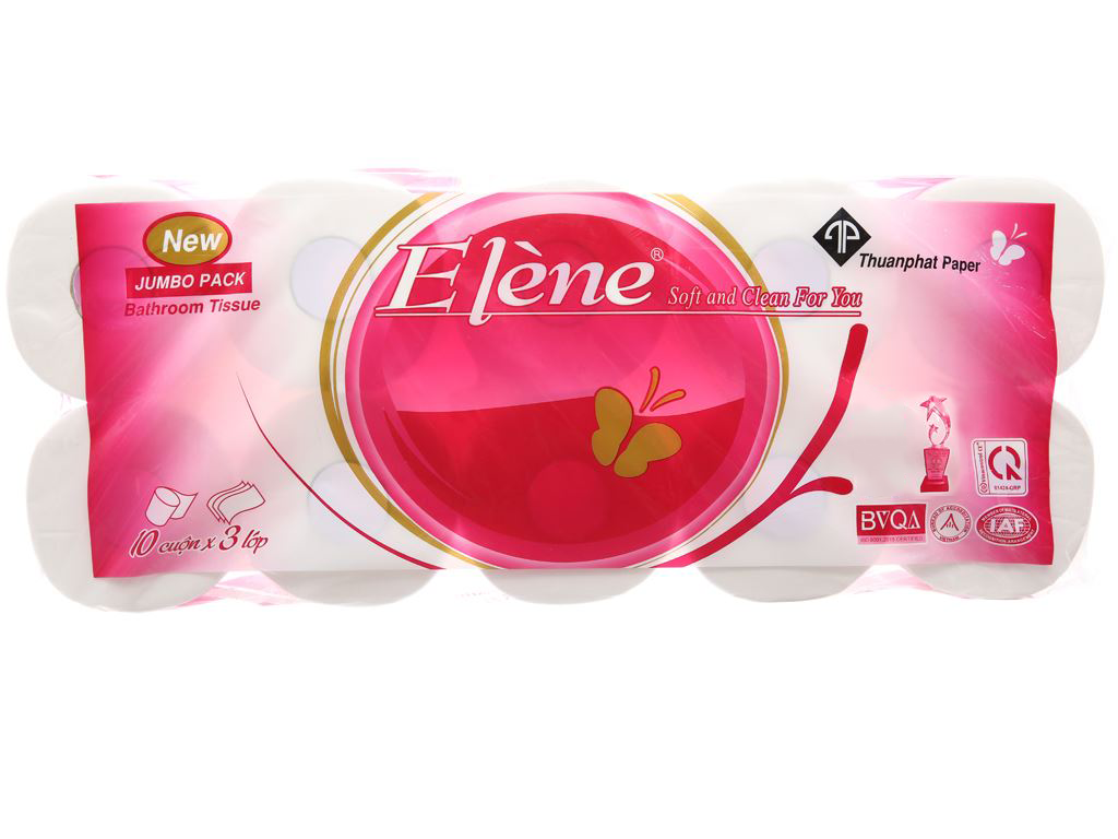 Giá của giấy vệ sinh Elène hồng 3 lớp: loại 10 cuộn: Khoảng 89.000 đồng