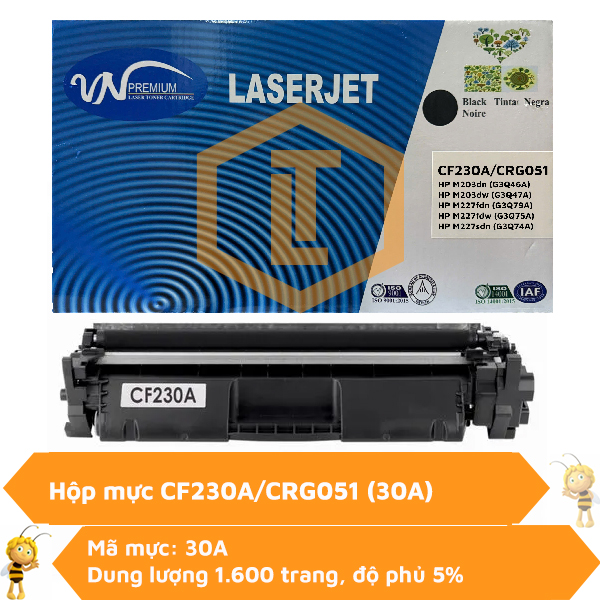 - Mã mực: VN Premium 30A Black Original LaserJet Toner Cartridge (CF230A) (mã khác: 051/CRG051)