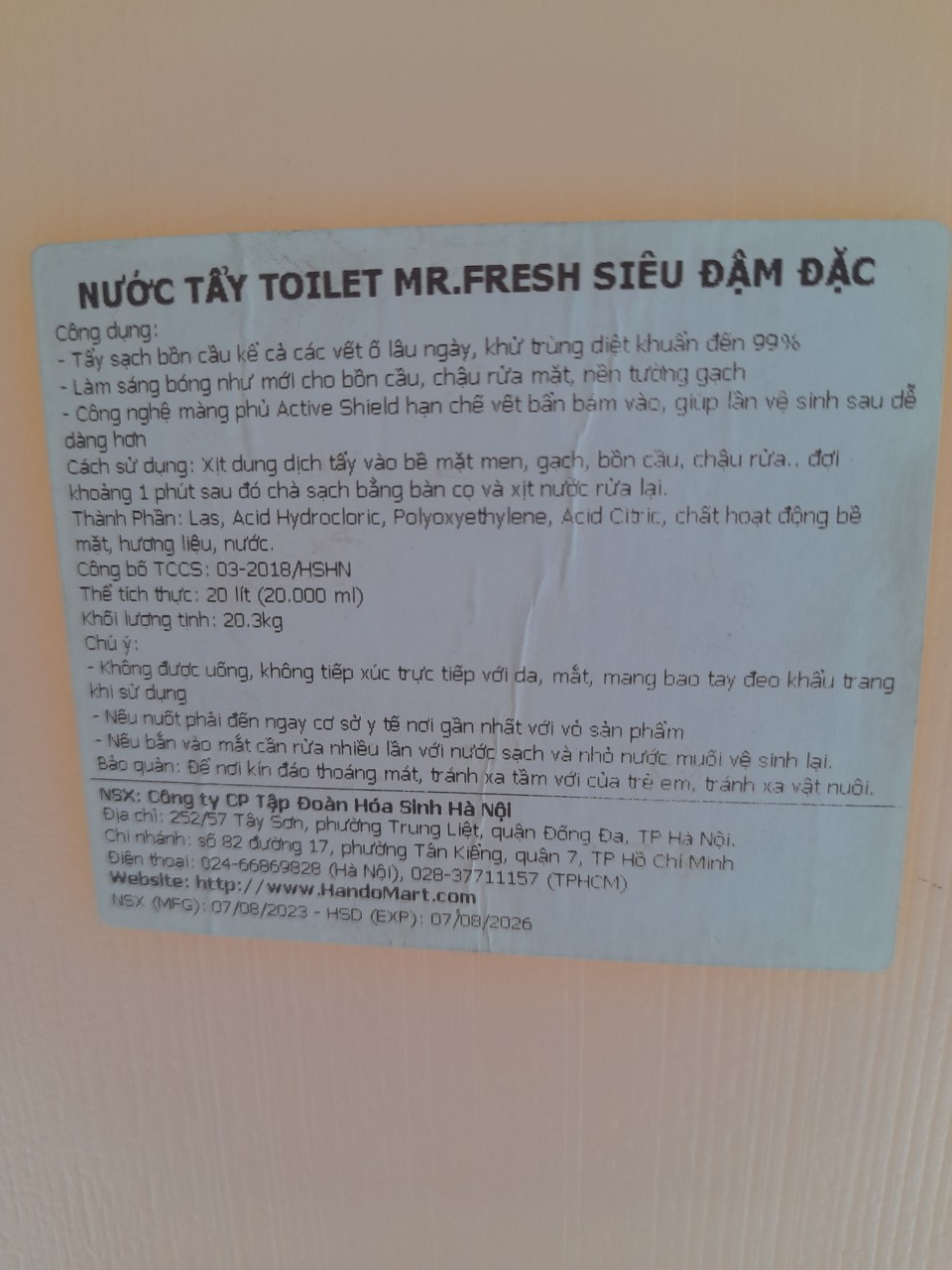 Đánh giá Nước tẩy toilet Mr.Fresh đậm đặc 20L