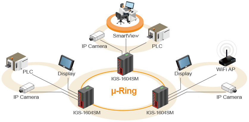 μ-Ring for Redundant Cabling, recovery time<10ms in 250 devices