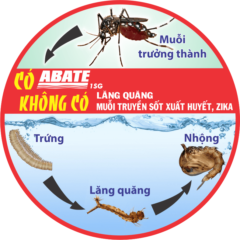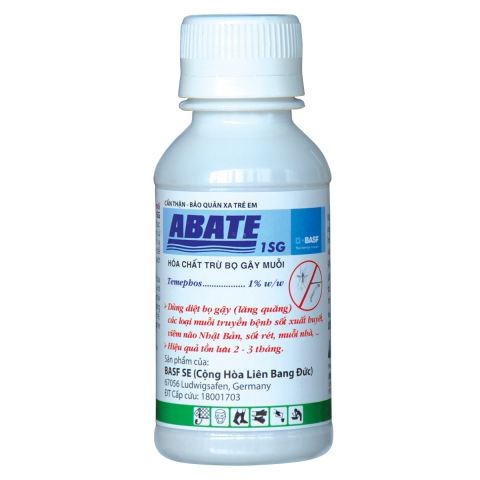 Rắc Abate 1SG vào các dụng cụ chứa nước hoặc những nơi muỗi thường đẻ trứng: bể cảnh, lọ hoa, bẫy kiến, vật phế thải, cống rãnh và nguồn nước thải, ... để diệt trừ bọ gậy muỗi (cách 1 - 3 tháng/lần).